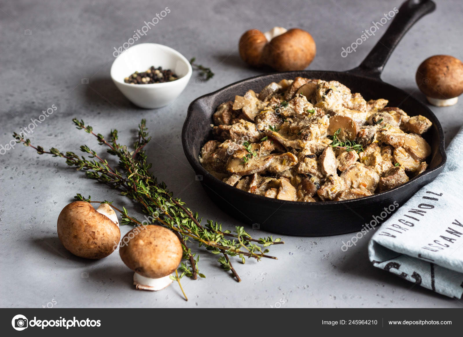 Сочное вкусное куриное мясо под грибным соусом на основе сметаны. Легкий в приготовлении ужин, на гарнир к которому достаточно будет паровых овощей. Соус можно измельчить в блендере или оставить так. …далее