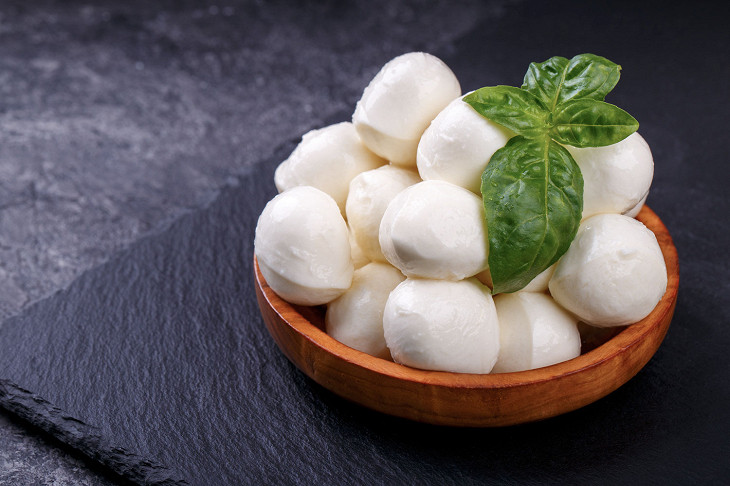 Моцарелла — очень нежный молодой сыр из коровьего молока, чаще всего имеющий форму шарика