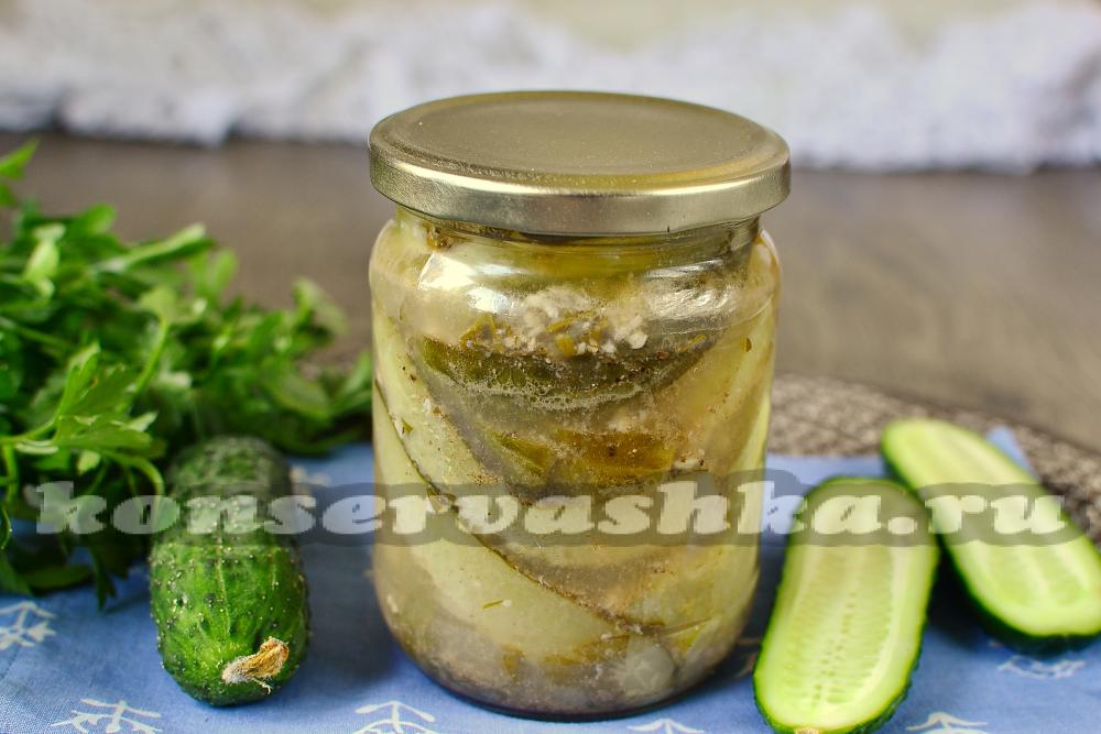 - Далее огурцы разместить по банкам, влить маринад и стерилизовать 20 мин.