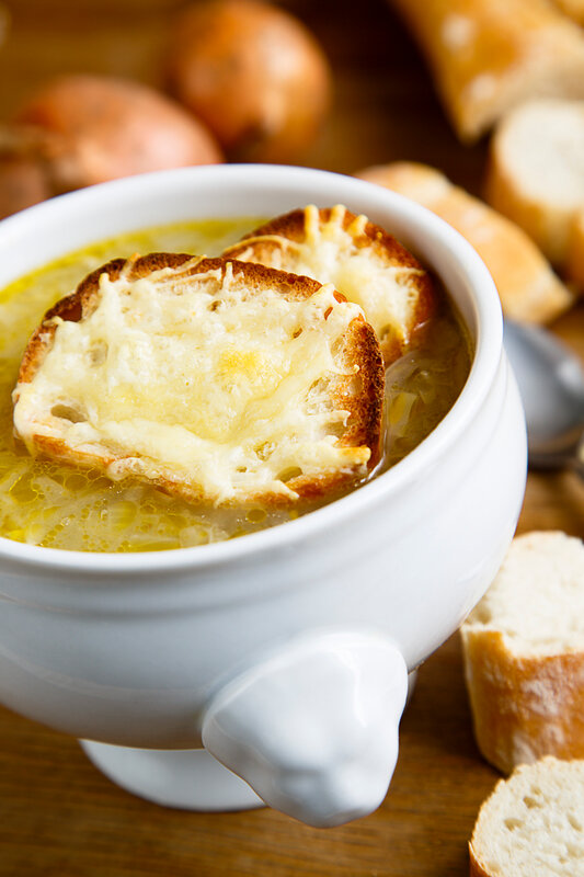Наверное, никто не поспорит с тем, что французы знают толк в еде. Эти мастера кулинарии могут приготовить невероятно вкусные блюда из, казалось бы, самых обычных и привычных ингредиентов. Поэтому сегодня кулинарный сайт 22recepta.ru предлагает своим читателям классический рецепт французского лукового супа с фото. Состоит такой суп из большого количества лука, который сперва томится на сливочном масле, а после варится в бульоне с добавлением ароматного тимьяна. Несмотря на столь простое сочетание ингредиентов, луковый суп получается с насыщенным ароматом и легким сладковатым вкусом.