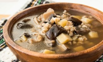 4.5 (90%) 16 votesГрибной суп из сушеных грибов с перловкой и мясом