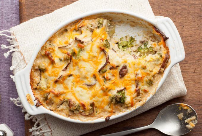 Это блюдо можно готовить в духовке, в микроволновке, если у неё есть режим «микроволны + гриль», есть даже рецепты для мультиварки и открытого гриля. Но особо вкусным оно получается именно в духовке.
