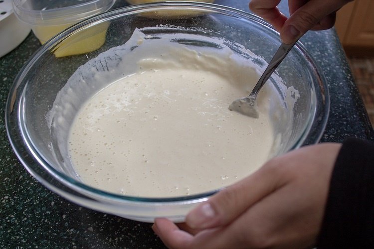 - Вмешайте пиво до получения однородной массы, вы можете добавить больше пива, если хотите, чтобы тесто было более однородным