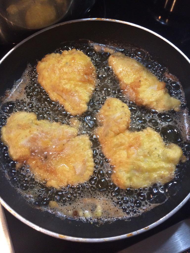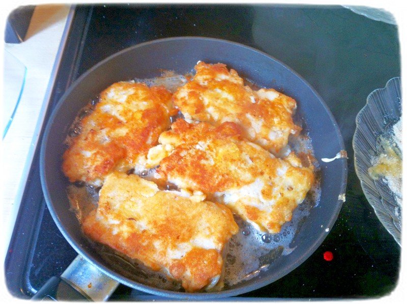 Перекладываем панированную кету в кляр, а затем отправляем жариться на сковороде.