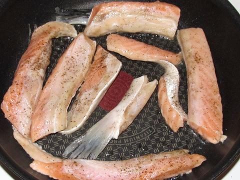 Для начала вам нужно приправить лосось солью и перцем, может быть, немного оливкового масла (настоятельно рекомендуется) и немного сливочного масла.Затем он обжаривается на раскаленной сковороде на среднем или сильном огне.