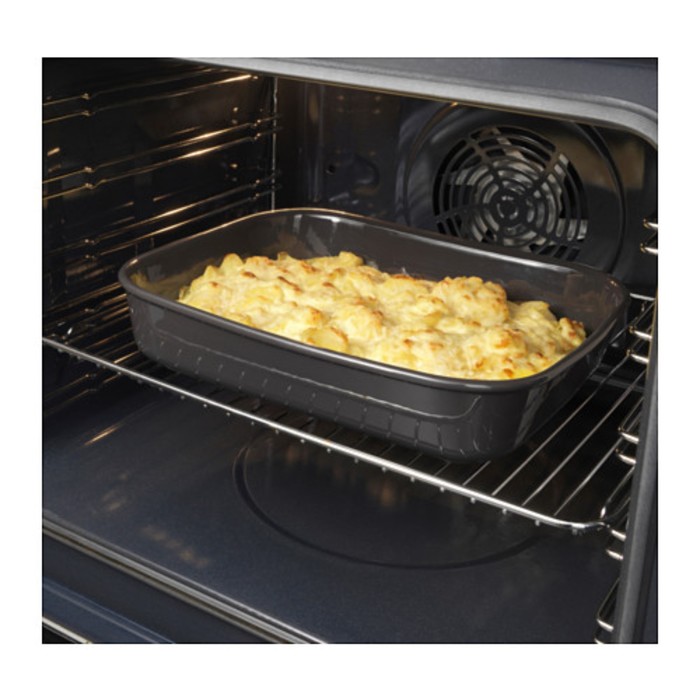 Благодаря утолщенным стенкам, которые хорошо удерживают тепло, продукты пропекаются равномерно. Готовое блюдо в такой форме можно подать на праздничный стол.