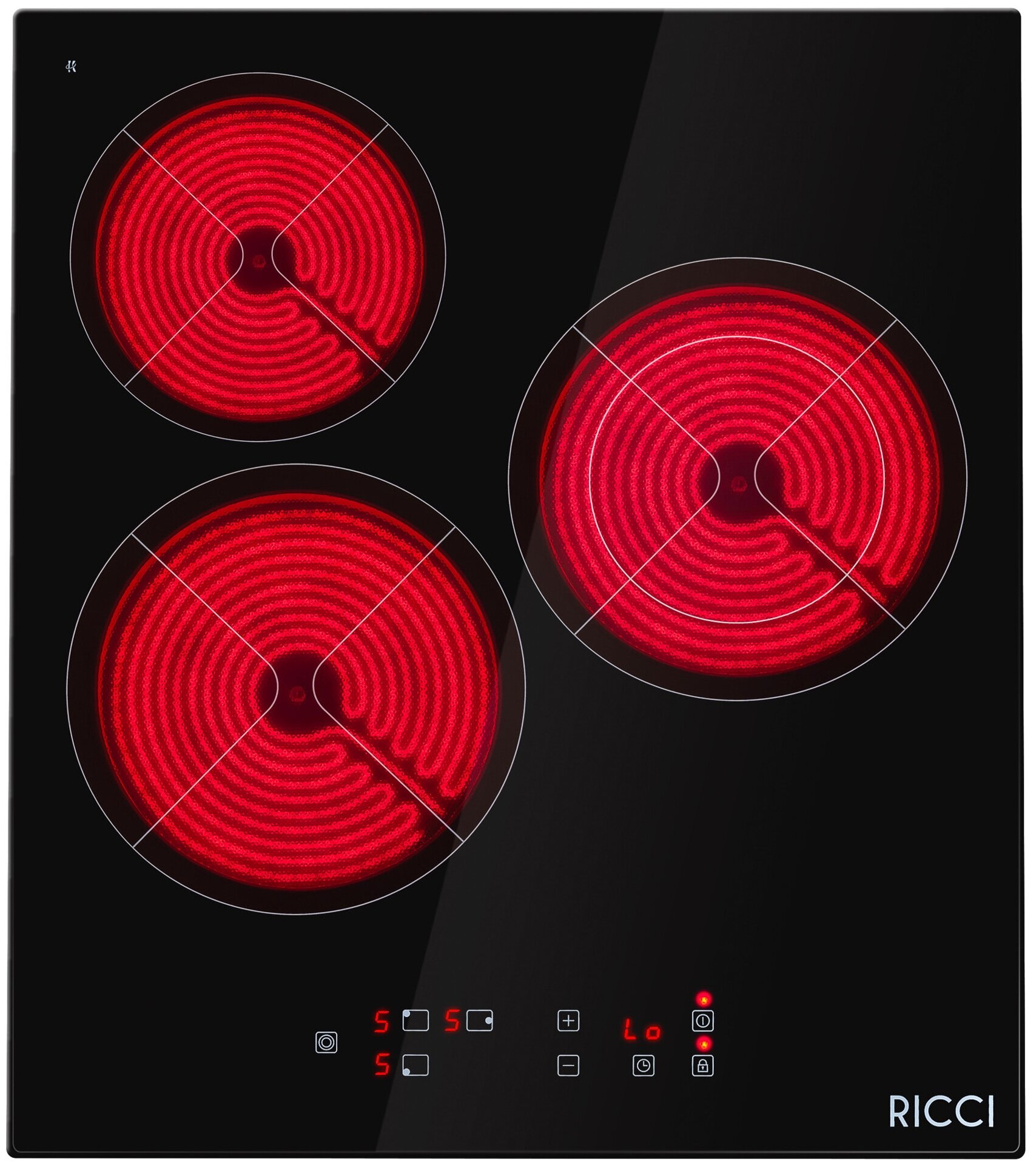 Как и в индукционных варочных панелях, нагревательные элементы в линейке электрических гладких поверхностей покрыты стеклокерамической поверхностью. Однако тепло под ним создается стальными змеевиками или галогенными лампами.