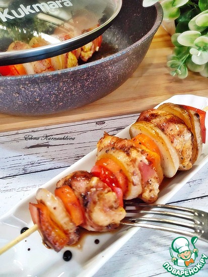 Как я уже сказал, лучше мясо нарезать ломтиками, а не кубиками. Если вы нарезали мясо ломтиками поперек волокон, то нанизывайте его на шампур плашмя.