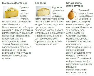 Это всем известная Моцарелла, Пармезан, Проволоне, и т.д. - Швейцария: Эмменталь, Грюйер.