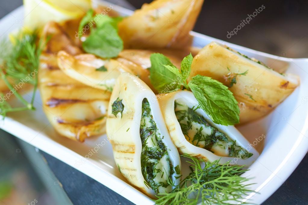 Распечатать color h3-transform.text-transform»> Фаршированный кальмар с салатомКальмар фарширован прекрасной сырной смесью и нежно приготовлен в приятном томатном соусе. В результате получается изысканное блюдо, которое прекрасно подается с зеленым салатом.