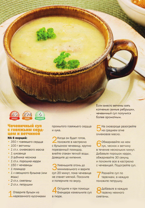 ΠΠ· ΠΊΡΠ°ΡΠ½ΠΎΠΉ ΠΏΠΎΠ»ΡΡΠ°ΡΡΡΡ ΠΎΡΠ΅Π½Ρ Π²ΠΊΡΡΠ½ΡΠ΅ ΠΈ ΡΡΡΠ½ΡΠ΅ ΡΡΠΏΡ, Ρ ΠΎΡΡ ΠΏΠΎΠ΄Π΅Π»ΠΈΡΡΡΡ ΡΠ΅ΡΠ΅ΠΏΡΠΎΠΌ ΠΎΠ΄Π½ΠΎΠ³ΠΎ ΠΈΠ· ΡΠ°ΠΊΠΈΡ . ΠΡΠΎ ΡΡΠΏ-ΠΏΡΡΠ΅, Π² ΡΠΎΡΡΠ°Π² ΠΊΠΎΡΠΎΡΠΎΠ³ΠΎ ΠΊΡΠΎΠΌΠ΅ ΡΠ΅ΡΠ΅Π²ΠΈΡΡ Π²Ρ ΠΎΠ΄ΡΡ ΠΎΠ²ΠΎΡΠΈ. ΠΠΎΠ»Π΅Π·Π½ΡΠΉ ΡΡΠΏΡΠΈΠΊ ΠΈΠ΄Π΅Π°Π»Π΅Π½ Π΄Π»Ρ ΠΏΠΎΡΡΠ°, Π²Π΅Π³Π΅ΡΠ°ΡΠΈΠ°Π½ΡΠΊΠΎΠΉ Π΄ΠΈΠ΅ΡΡ ΠΈ ΡΠΈΡΡΠ΅ΠΌΡ ΠΏΡΠ°Π²ΠΈΠ»ΡΠ½ΠΎΠ³ΠΎ ΠΏΠΈΡΠ°Π½ΠΈΡ.
