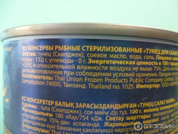 Состав качественного продукта представлен маслом (нередко используется соевое), тунцом, питьевой водой, поваренной пищевой солью.
