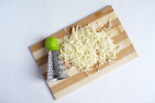 1. Сыр трем на терке (у меня нашелся только в ломтиках, поэтому я резала).