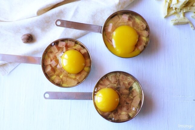 Яйца кокот готовы, когда белок свернулся, а желток остался жидким.