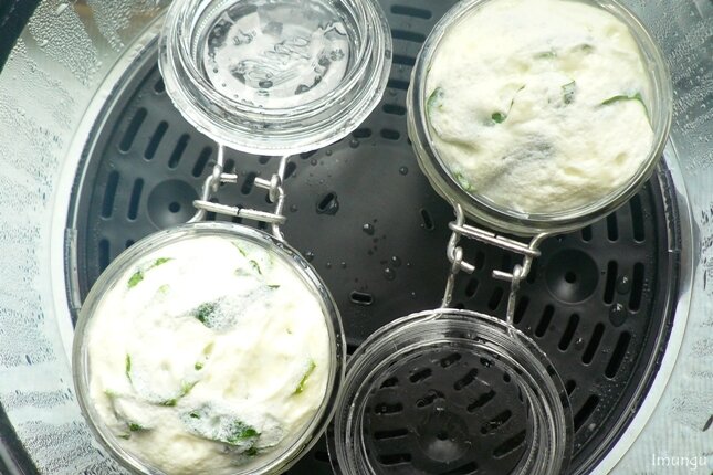 7. Готовим на пару 10 минут. За три минуты до окончания, добавляем желтки.