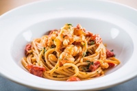 Итальянская паста с помидорами на две персоны готовится из следующих ингредиентов: