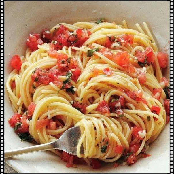 Aglio e Olio со свежими помидорами (паста с чесноком и маслом)