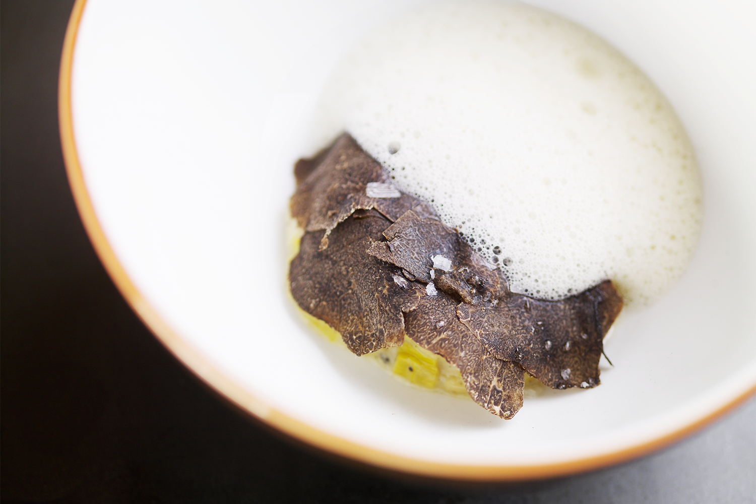 Фокус в том, что ее всегда применяли для птицы, а Хумм перенес метод, используемый для лучших пулярок, на скромный и дешевый сельдерей. Чтобы блюдо не выглядело совсем по-сиротски, он добавил к нему черный трюфель, изобретя еще одну модель для концепции «бедное – богатое». Само блюдо напрямую никто не копирует, но в паре с Колагреко они изрядно продвинули идею самых простых овощей в сочетании с люксовыми продуктами.