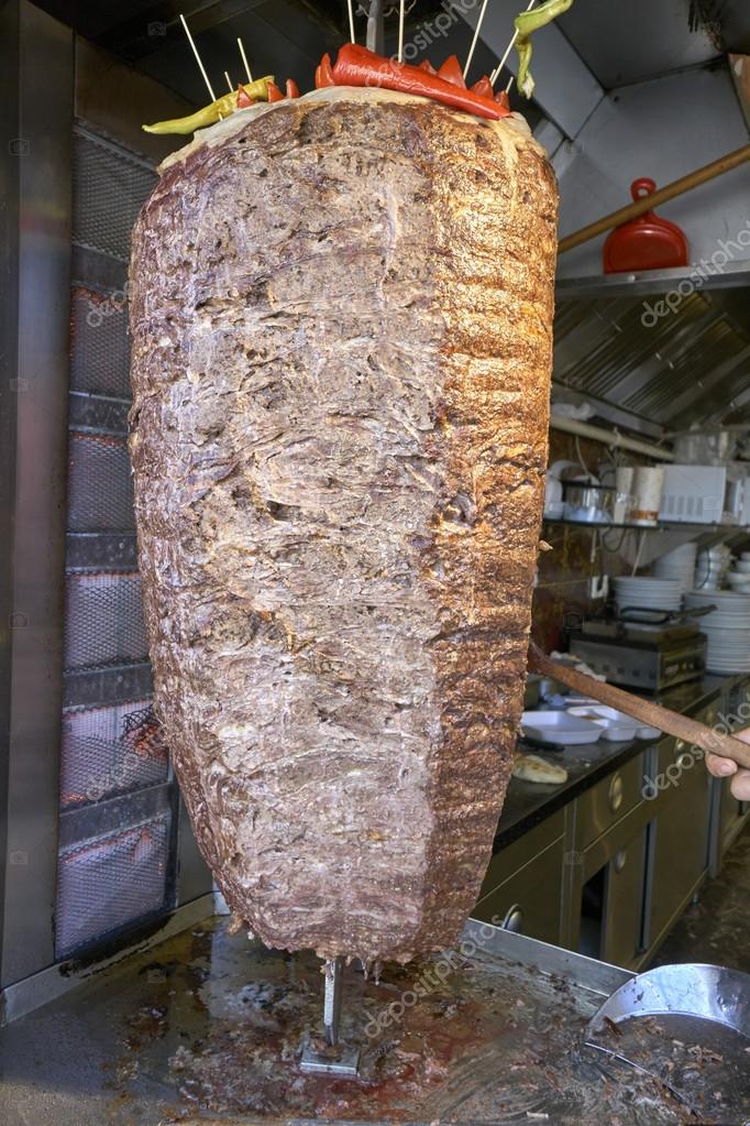 Мясо для Шаурмы готовится на вертикальном шампуре, который непрерывно вращается вокруг специальных нагревательных элементов.