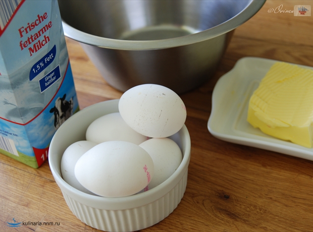 Для этого нам понадобится минимум ингредиентов: молоко, яйца и немного соли.