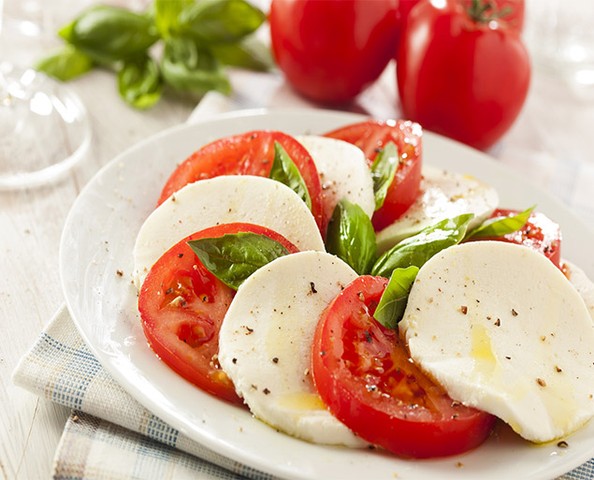 Крахмал из макарон в сочетании с овощным бульоном создает восхитительный соус с ароматом чеснока и помидоров. Затем все готовится свежей моцареллой и сбрызгиванием бальзамического уксуса.