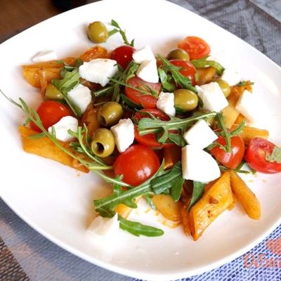 В его состав входят все традиционные ингредиенты — помидоры, базилик, свежая моцарелла, оливковое масло и бальзамик — с простым добавлением пасты. Его легко приготовить, быстро, и вся моя семья с нетерпением ждет этого блюда.