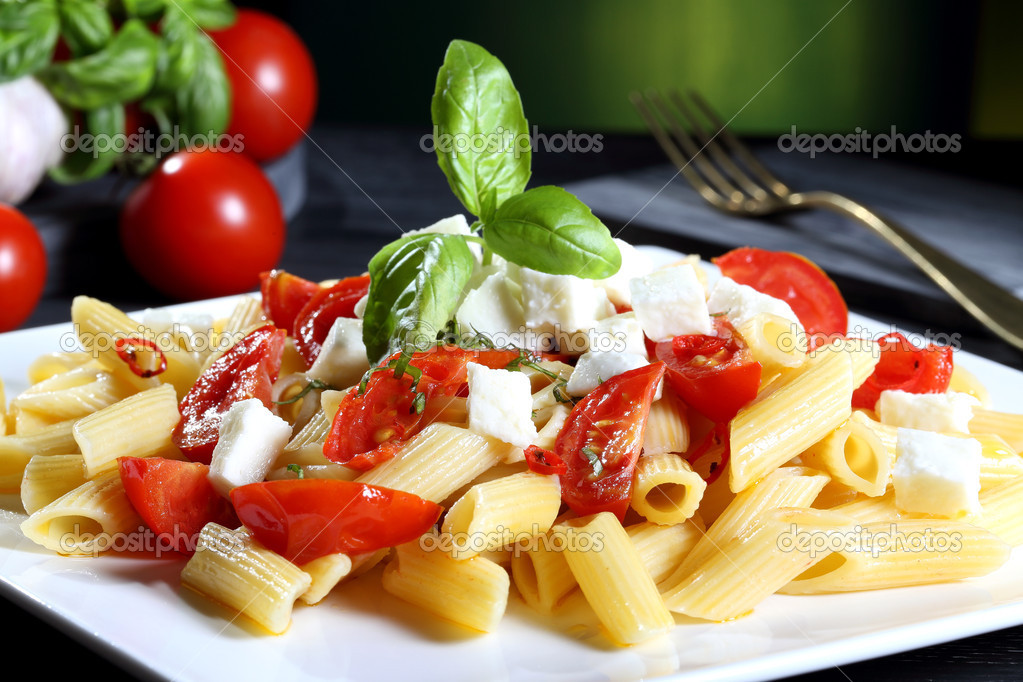 Рецепт невероятно вкусной пасты с сыром моцарелла и помидорами