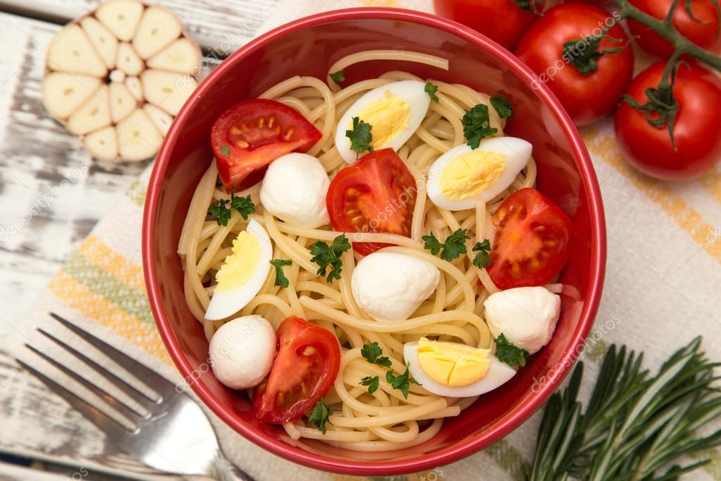 Паста с томатами и моцареллой: Спагетти с помидорами и моцареллой, пошаговый рецепт с фото