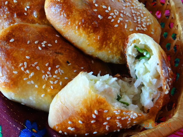 Так что это еда не только для тела, но и для души. И пекутся они по-особому. Для настоящих осетинских пирогов тесто не раскатывают скалкой, а вытягивают руками, чтобы поджаристая корочка стала тонкой, а под ней было много сочной вкусной начинки. Толстый слой теста всегда выдаст руку неопытной хозяйки.