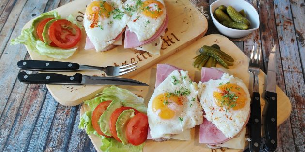 • Яичницу нужно кушать вилкой, помогая если это нужно, хлебом, держа его только в левой руке.