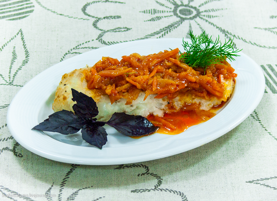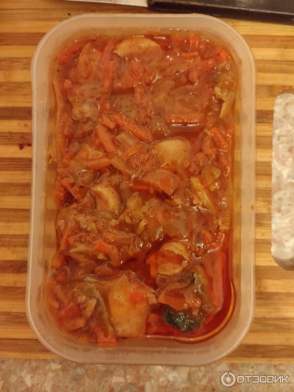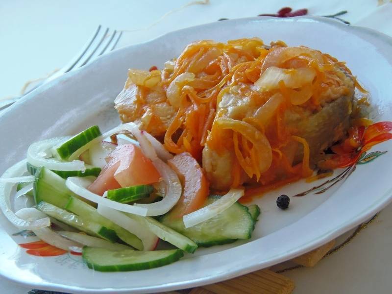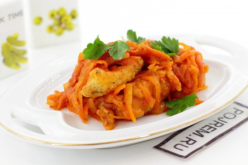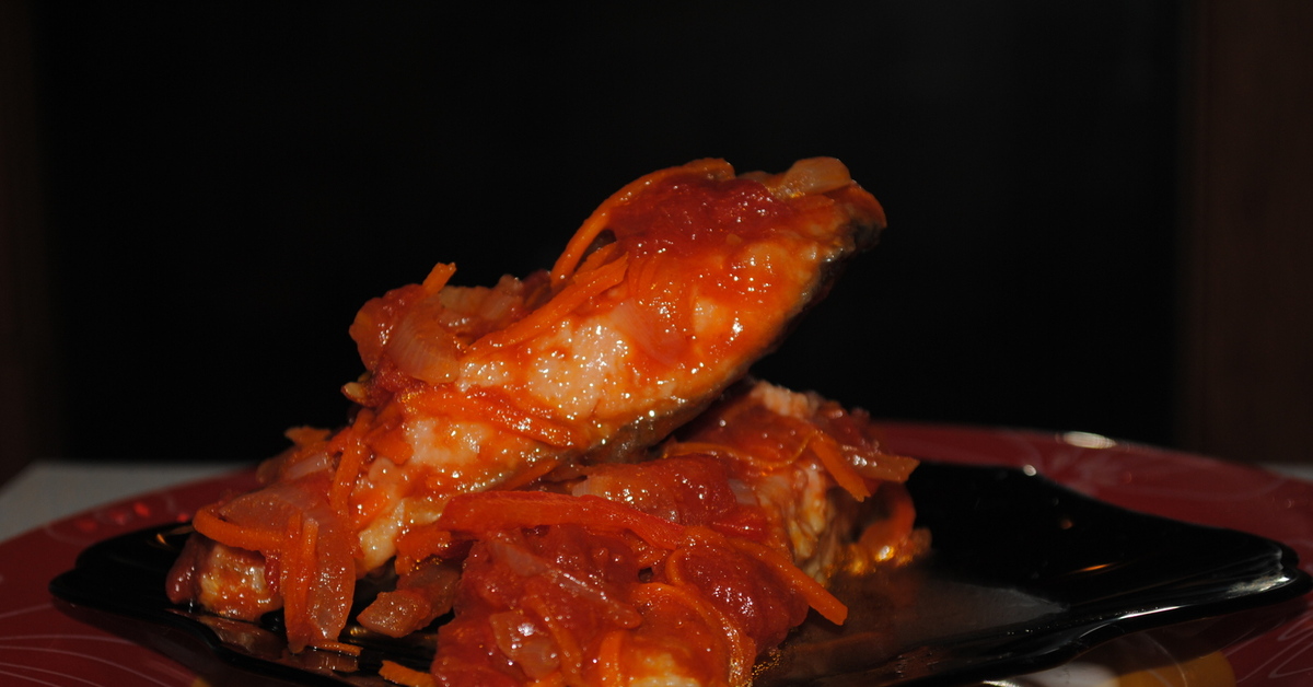ΠœΡ‹ Π²ΠΎΠΎΠ±Ρ‰Π΅ ΠΎΡ‚Ρ…ΠΎΠ΄ΠΈΠΌ ΠΎΡ‚ классики ΠΈ пропускаСм ΠΎΠ±ΠΆΠ°Ρ€ΠΊΡƒ. Π‘Ρ€Π°Π·Ρƒ опрСдСляСм Ρ€Ρ‹Π±Ρƒ для Ρ‚ΡƒΡˆΠ΅Π½ΠΈΡ с Ρ‚ΠΎΠΌΠ°Ρ‚Π½ΠΎ-ΠΎΠ²ΠΎΡ‰Π½ΠΎΠΉ смСсью.