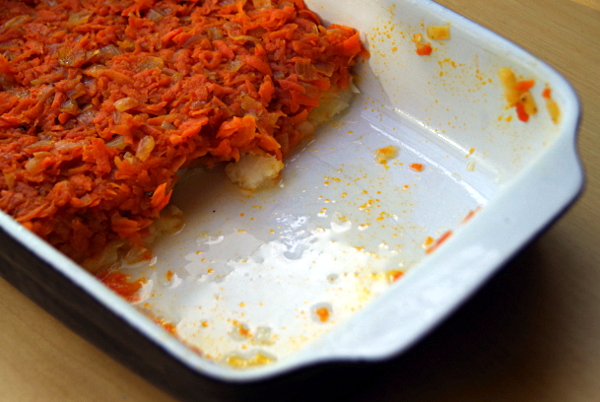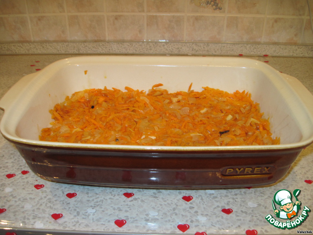 8. ΠŸΠΎΠ»ΠΎΠ²ΠΈΠ½Ρƒ ΠΌΠΎΡ€ΠΊΠΎΠ²ΠΈ с Π»ΡƒΠΊΠΎΠΌ Π²Ρ‹Π»ΠΎΠΆΠΈΡ‚ΡŒ Π² ΠΊΠ°ΡΡ‚Ρ€ΡŽΠ»ΡŽ (Ρ‚ΠΎΠ»ΡŒΠΊΠΎ Π½Π΅ Π°Π»ΡŽΠΌΠΈΠ½ΠΈΠ΅Π²ΡƒΡŽ) ΠΈΠ»ΠΈ Π² Π΄Ρ€ΡƒΠ³ΡƒΡŽ Π΅ΠΌΠΊΠΎΡΡ‚ΡŒ.Π‘Π²Π΅Ρ€Ρ…Ρƒ ΠΏΠΎΠ»ΠΎΠΆΠΈΡ‚Π΅ ΠΎΠ±ΠΆΠ°Ρ€Π΅Π½Π½ΡƒΡŽ Ρ€Ρ‹Π±Ρƒ.