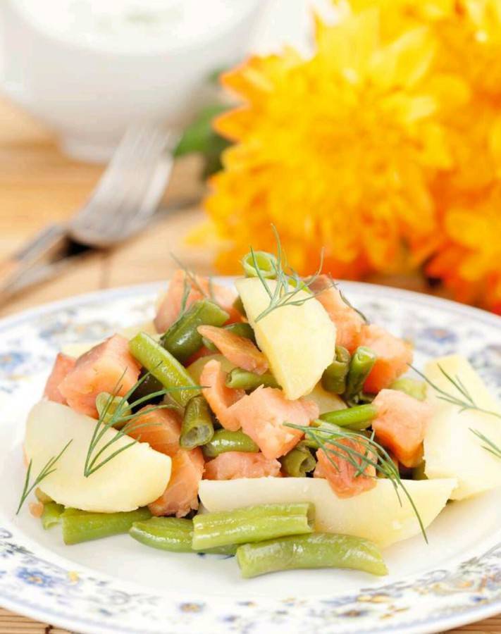 Лосось горячего копчения и картофельный салат Этот картофельный салат выходит на новый уровень с лососем горячего копчения, сахарным горошком и спаржей.Это вкусная сторона, которой можно поделиться, или вы можете насладиться ею в качестве основного блюда.