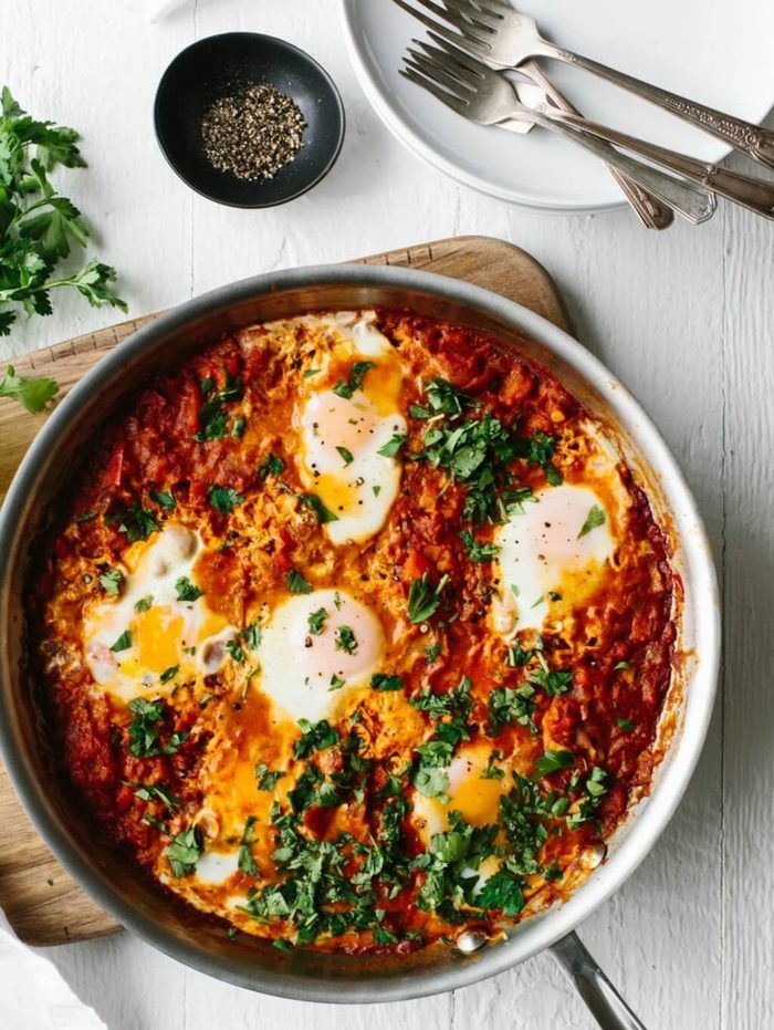 Многие считают это блюдо израильской едой для завтрака, потому что оно довольно популярно в таких местах, как Тель-Авив, но эти яйца в томатном соусе можно найти во многих частях Северной Африки и Ближнего Востока.