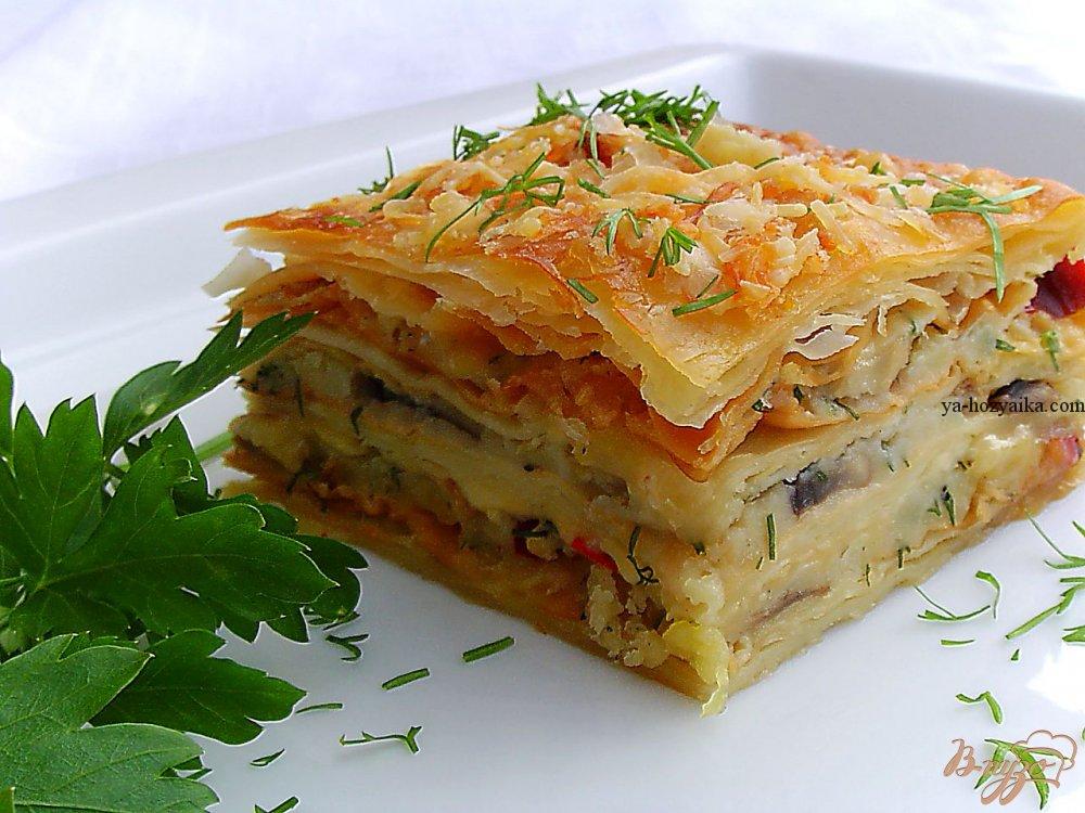 Пошаговый рецепт слоеного пирога с сыром и грибамиУкрEN