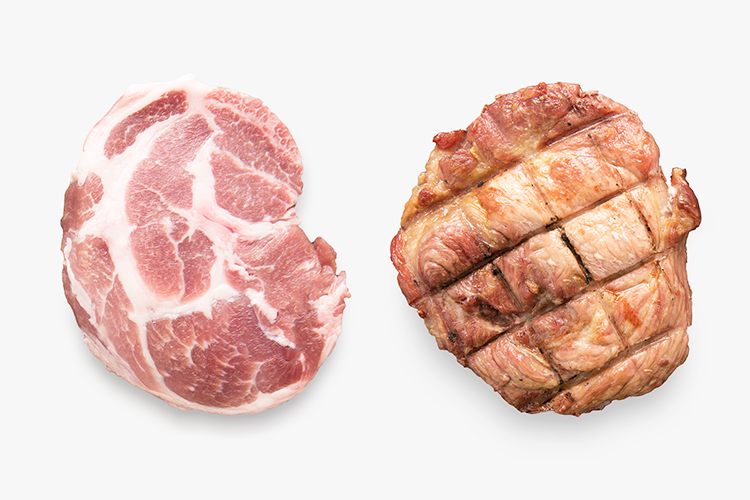 При приготовлении следует выбирать сковородки-гриль или емкость с толстым дном. Перед тем, как выложить кусочки, сковороду надо разогреть. Если специального термометра дома нет, можно проверить готовность емкости на глаз: она должна быть горячей, но не дымиться. Когда выкладываете мясо на поверхность, оно должно шипеть.