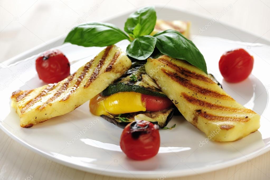 Сыр Халуми можно не только подавать со свежими овощами, но и обжаривать с ними вместе в одной сковороде. Для приготовления такого блюда потребуются следующие продукты: