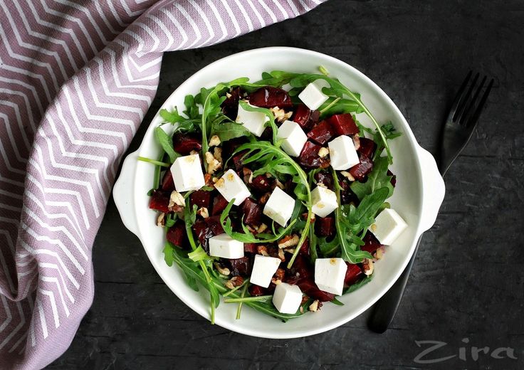 Тебе понадобится: 250 г свеклы, 200 г адыгейского сыра, 2 зубчика чеснока, горсть грецких орехов, 1 ст.л. лимонного сока, 2 ст.л. растительного масла, молотый черный перец, соль.