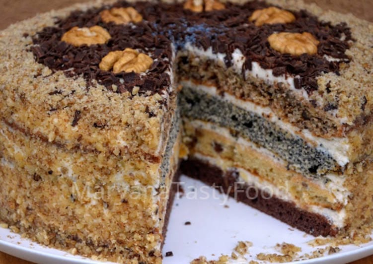 Трехслойный торт «Сказка» с маком, изюмом и орехами – основные принципы приготовления