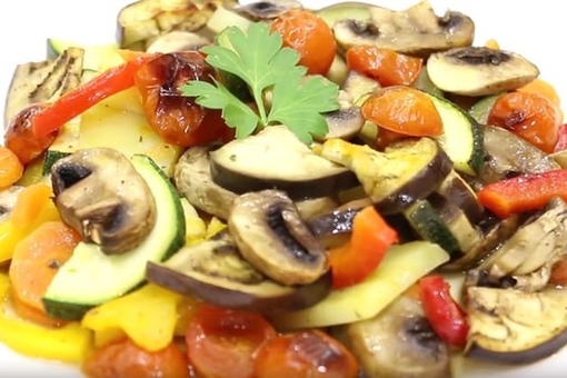 Кабачки, тушеные с баклажанами и помидорами