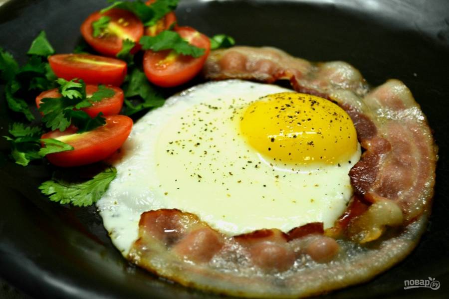 В Великобритании такое блюдо подается с беконом, который обжаривается на отдельной сковороде и перекладывается на тарелку к поджаренному яйцу. А к празднику всех влюбленных готовится яичница в виде сердца. Также можно приготовить яичницу в виде цветка, что станет оригинальным началом празднования Международного женского дня.