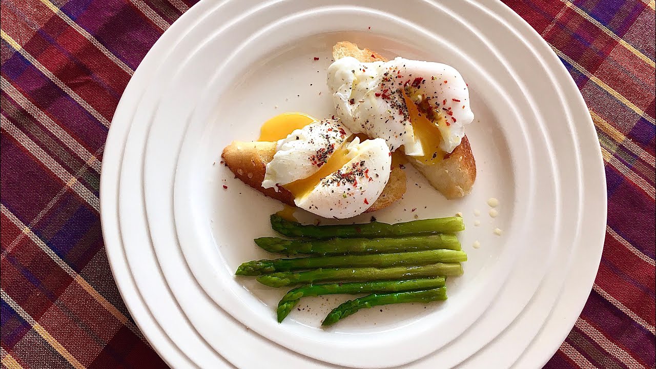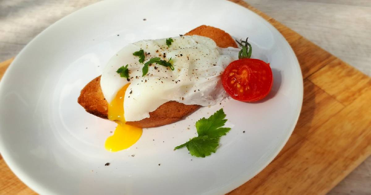 Одно разбитое яйцо-пашот на 2 кусках хлеба Яйцо раскалывается в чашку или миску любого размера, а затем осторожно опускается в кастрюлю с водой при температуре примерно 75 ° C (167 ° F) и готовится до тех пор, пока яичный белок не затвердеет, но желток остается мягким. «Идеальное» яйцо-пашот имеет жидкий желток с затвердевающей коркой и без остатков сырого белка. В странах, где проводится всеобщая вакцинация кур от сальмонеллы, употребление яиц с жидким желтком совершенно безопасно.