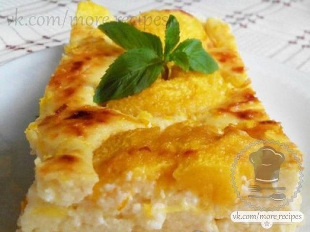 Получилась запеканка с нежной структурой, воздушная как суфле и с приятным персиковым ароматом.