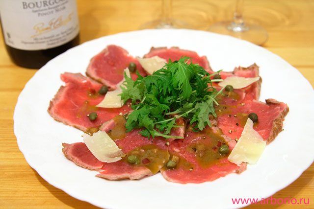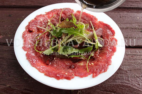 - Пошаговый рецепт приготовления карпаччо из говядины срукколой