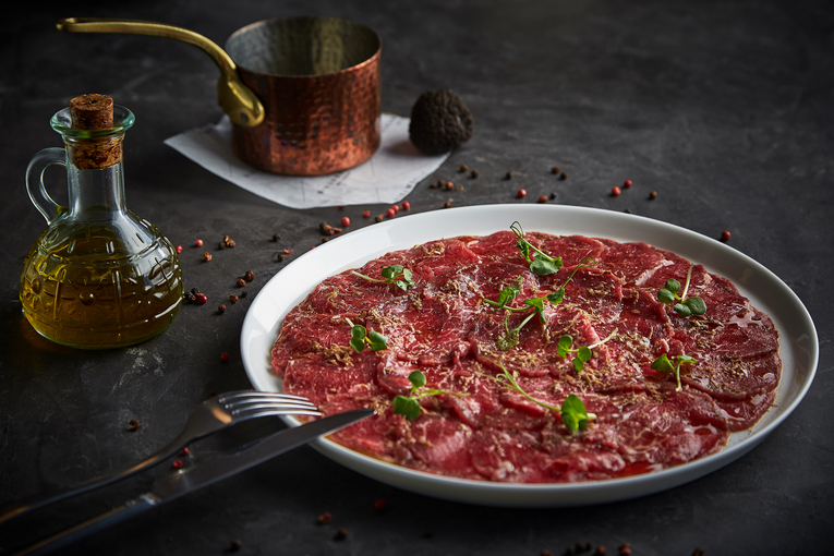 Карпаччо из говядины – это аппетитная холодная закуска, которая была рождена в Венеции. Её особенность заключается в том, что она с лёгкостью может возбудить вкусовые рецепторы человека. Это помогает лучше чувствовать вкус дальнейших блюд. Кроме того, закуска благоприятно влияет на здоровье. Говядина восстанавливает эритроциты в крови человека, а специи способны улучшить пищеварение.