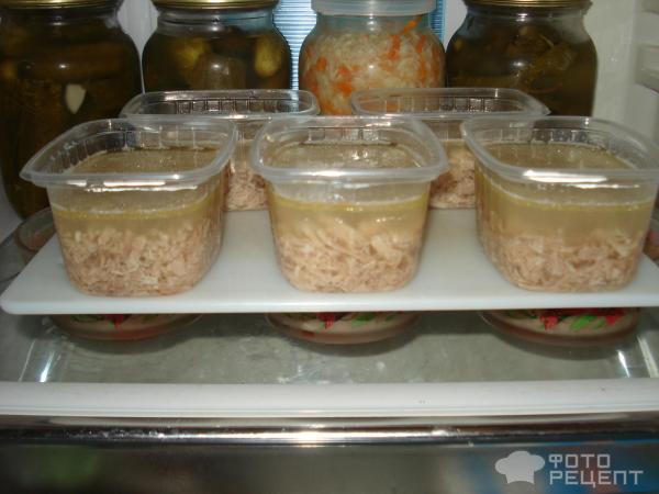 - Бульон заливают в судок, а будущий холодец отправляют в холодильник.