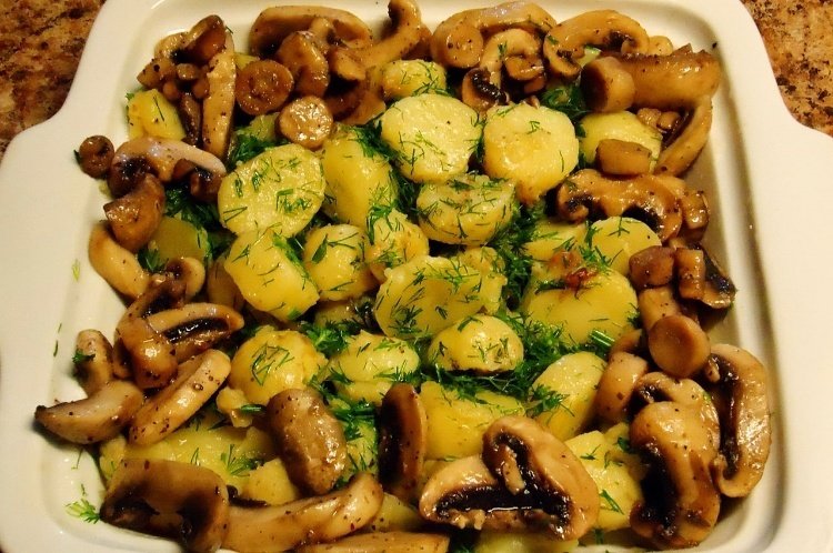 - Тушеная картошка с капустой и грибами на сковороде