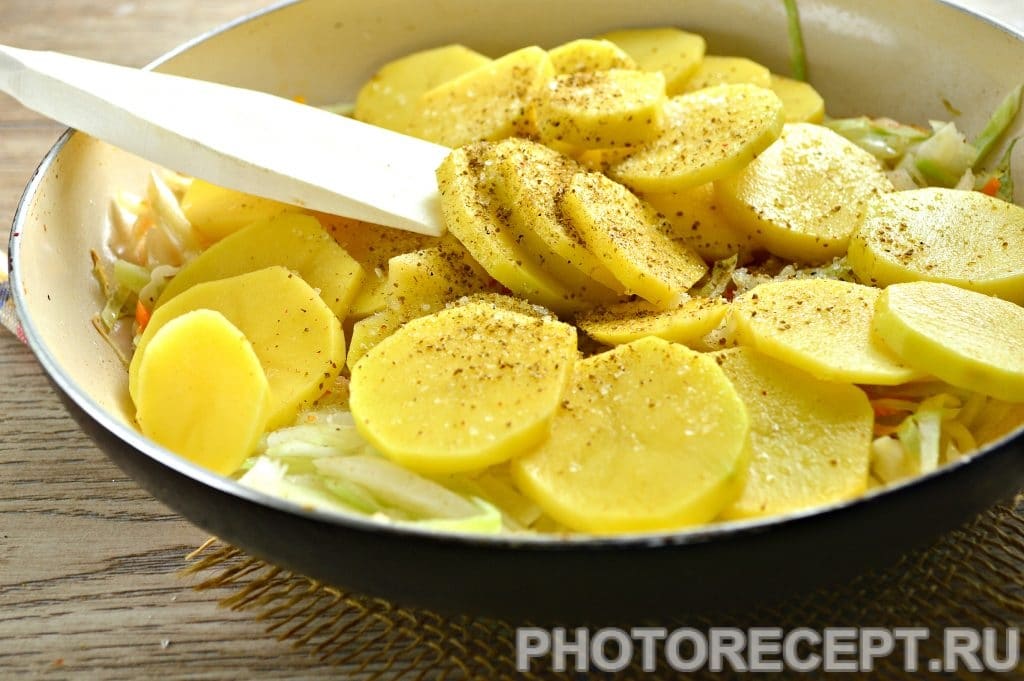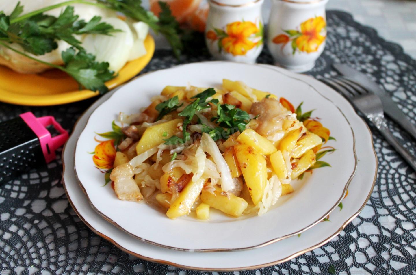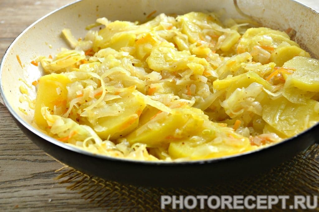 Картошка с капустой жареная рецепт с фото: Жареный картофель с капустой | Меню недели