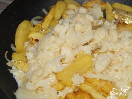 - Тушеный картофель с цветной капустой и зеленым горошком