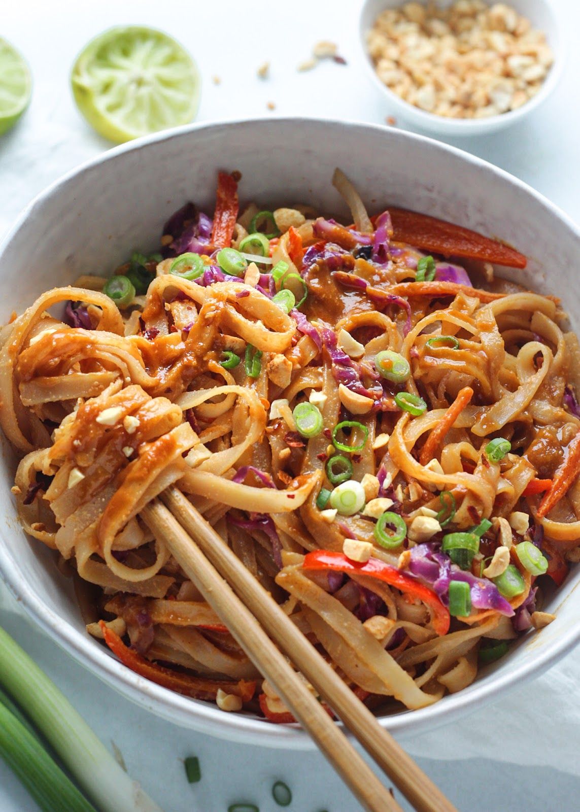 углеводов 96G 32% волокна 2G 8% сахар 9 г 10% белок 12G 24% Витамин А 315 МЕ 6% Витамин С 8. Кальций 81 мг 8% Железо 2,1 мг 12% * Пробовали этот рецепт? Отметьте @jessica_gavin в Instagram. Я хотел бы видеть, как это получается! Тег @jessica_gavin Убрать выделение со всего 8 унций сушеной широкой рисовой лапши 1/4 стакана рыбного соуса (нам пла) 3 столовые ложки сока тамаринда 2 столовые ложки сахара 3 столовые ложки арахисового масла 1 1/2 фунта крупных креветок, очищенных от хвостов 4 зубчика чеснока, мелко нарезанных 2 лука-шалота, нарезанные 1 свежий красный перец чили, нарезанный 1 большое яйцо, слегка взбитое 1 стакан свежих ростков фасоли 1/2 стакана нарезанного несоленого жареного арахиса 1 лайм, нарезанный небольшими дольками 1/4 стакана свежих листьев кинзы